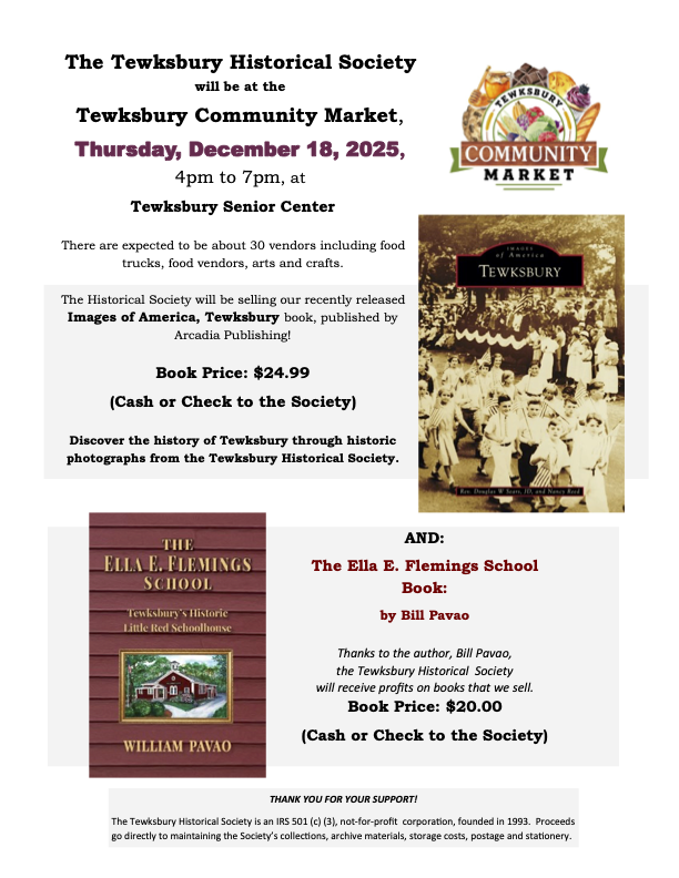 The Tewksbury Historical Society will be at the Tewksbury Community Market